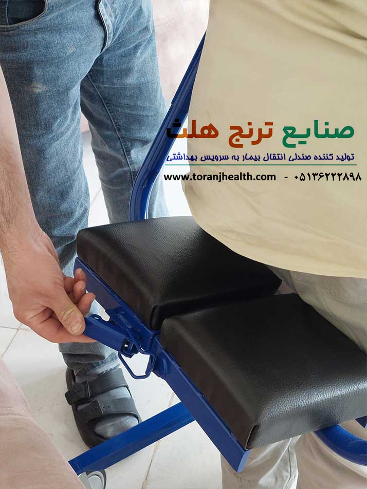 قفل ایمنی در نشیمن صندلی انتقال بیمار لازم هست قبل از حرکت بسته شود.