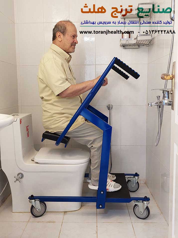 به کمک این دستگاه چرخدار ، بیمار پس از عمل جراحی از روی تخت بلند شده و به توالت برده میشود.